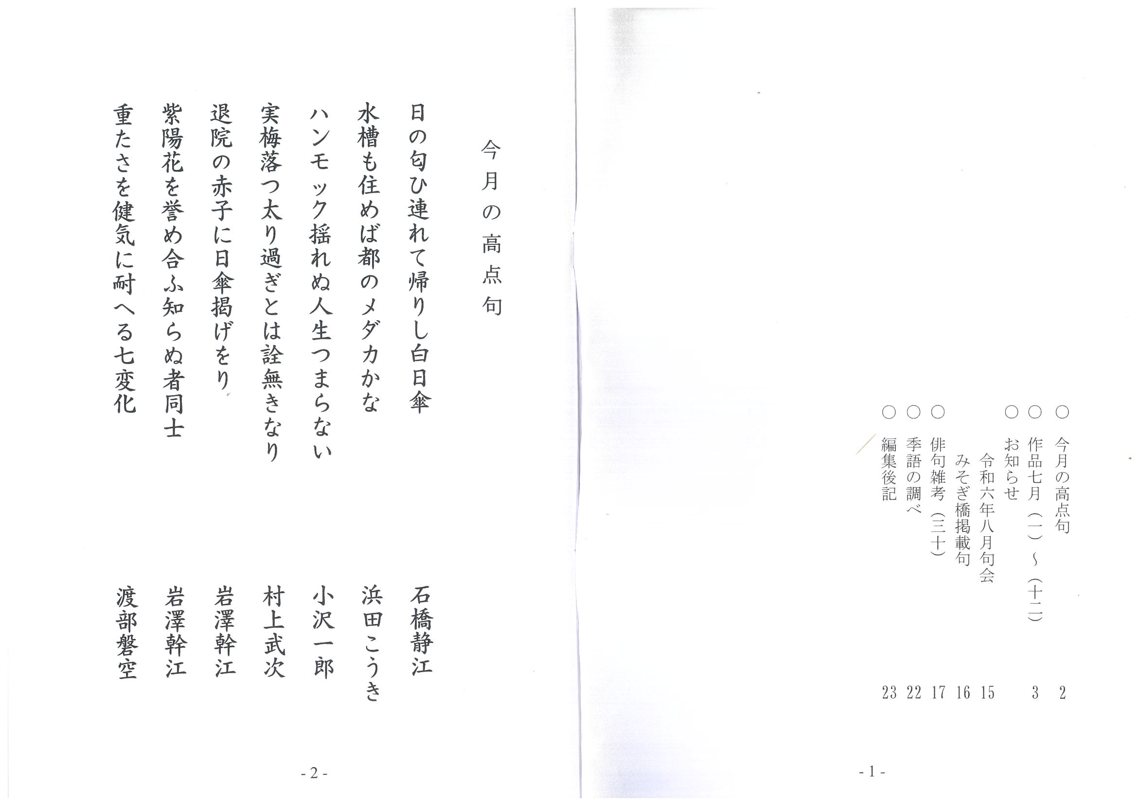 まちづくり団体 葉山レポート 2024/07/27 葉山俳句会会報(第931回句会)が発行されました。/葉山俳句会 葉山俳句会様より、第931回句会の会報が発行されました。 葉山まちづくり協会にて閲覧ができます(閲覧用バックナンバーもございます)。 ぜひご来館くださいませ。