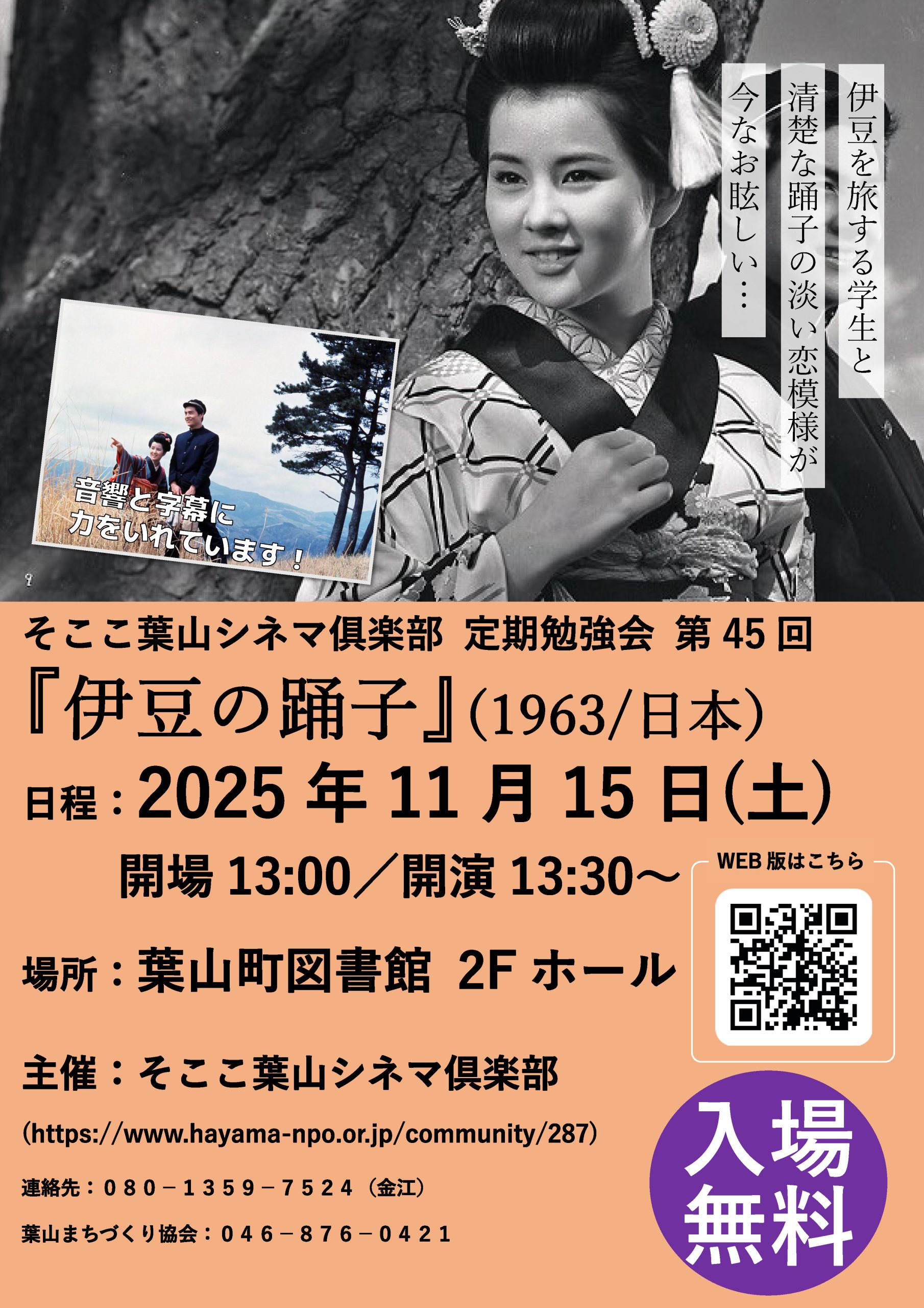 【11月15日開催】そここ葉山シネマ俱楽部 定期勉強会 第45回 『伊豆の踊子』/そここ葉山シネマ俱楽部