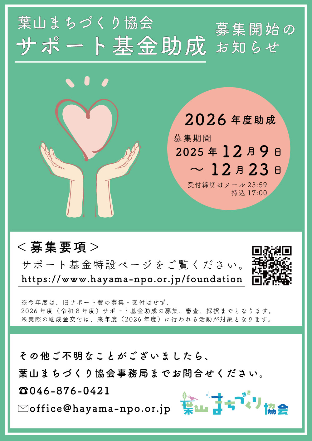 2026/令和8年度 葉山まちづくりサポート基金助成・募集のお知らせ/葉山まちづくり協会