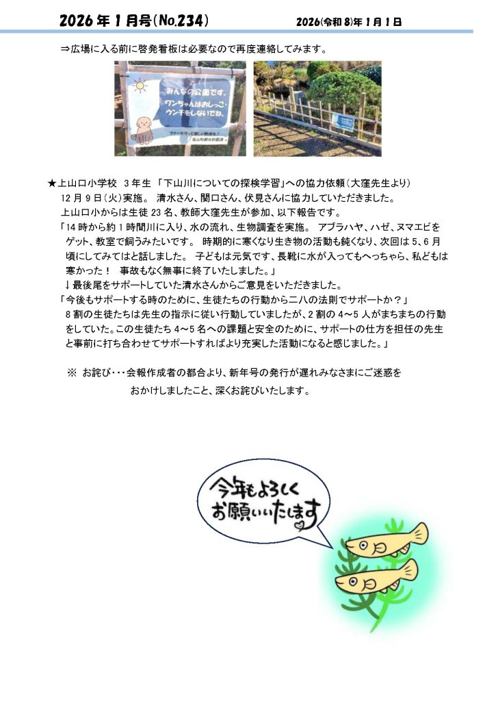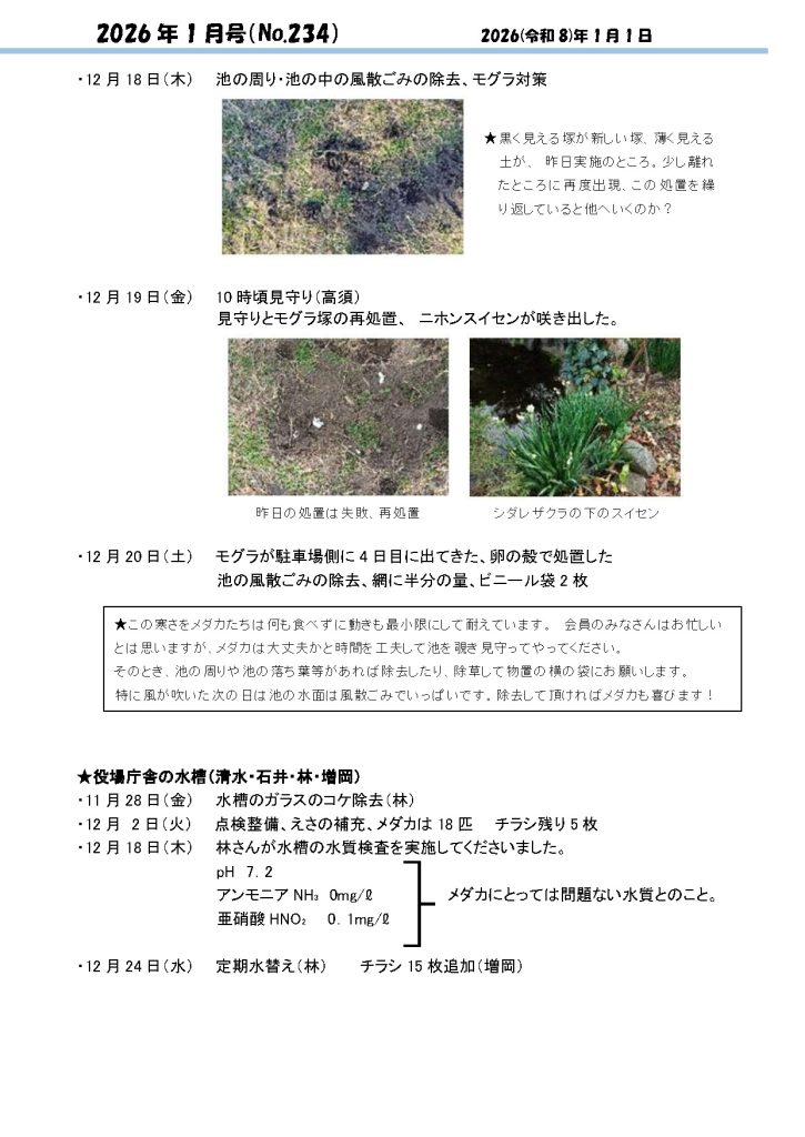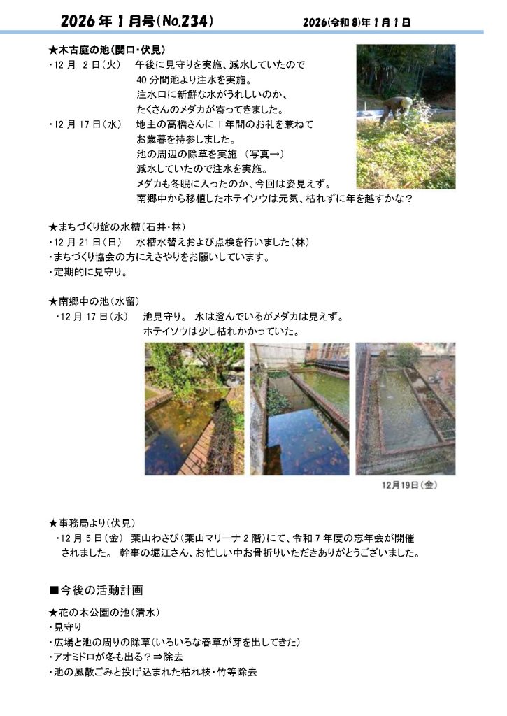葉山メダカの会様より、会報「2026年1月号」が発行されました。