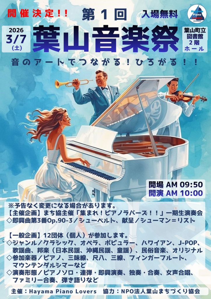 【3月7日開催】「第一回葉山音楽祭」/HAYAMA PIANO LOVERS