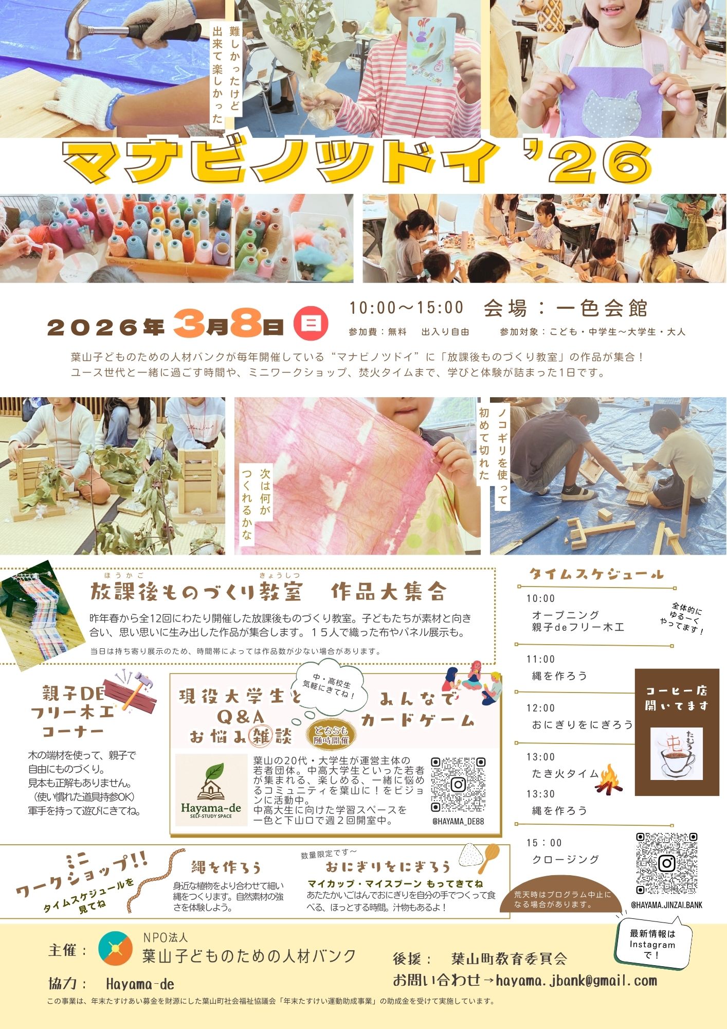 【3月8日開催】「マナビノツドイ ’26」開催のお知らせ/葉山子どもための人材バンク