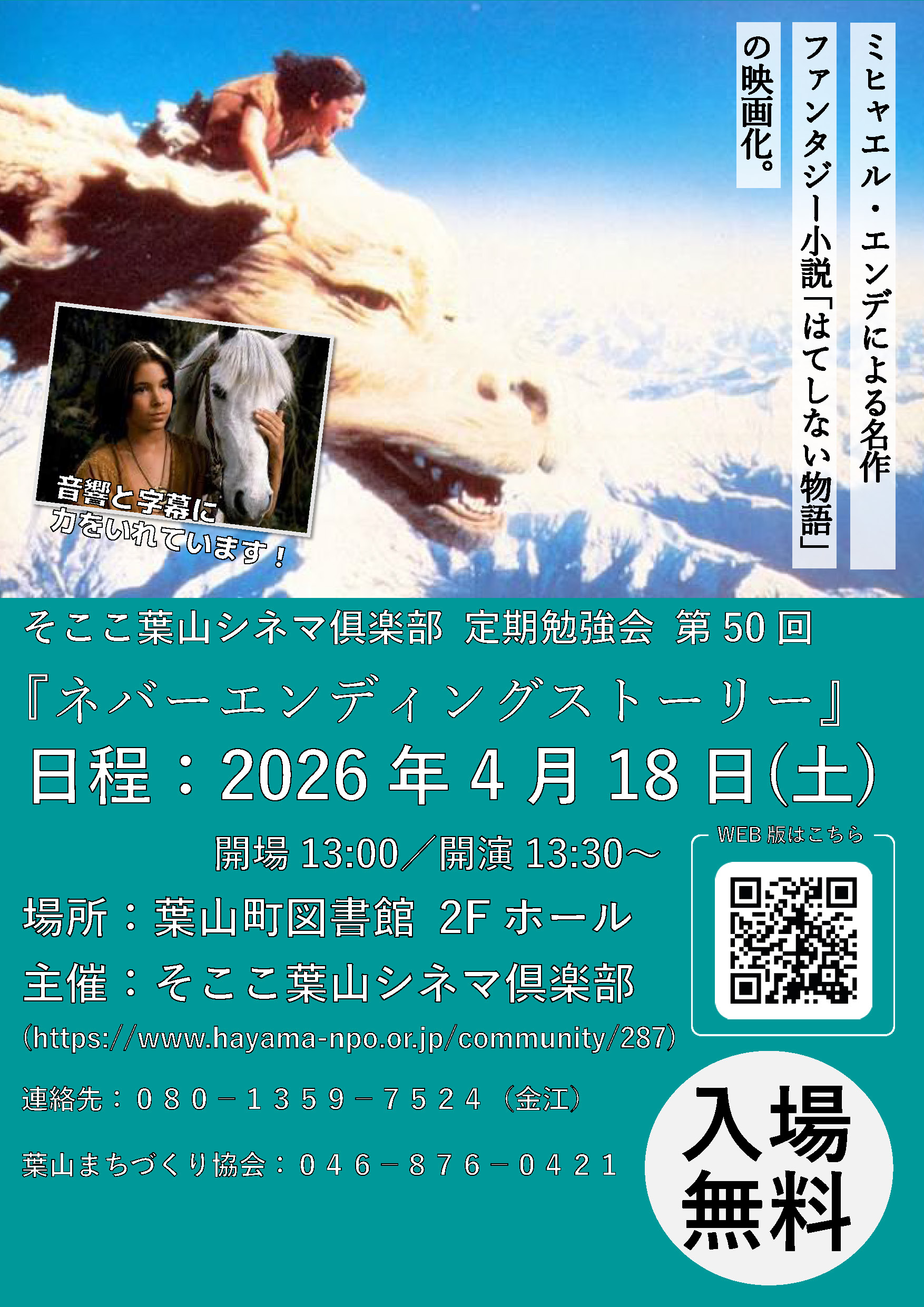 【4月18日開催】そここ葉山シネマ俱楽部 定期勉強会 第50回 『ネバーエンディングストーリー』/そここ葉山シネマ俱楽部