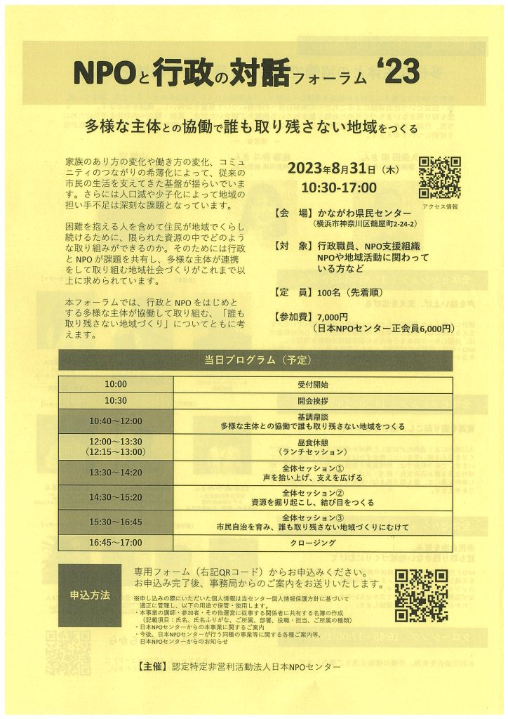 新着情報一覧 2023/07/07 助成金やサポートのご案内 防災リーダーに必要な多様性に配慮した視点を学ぶ~女性、高齢者、障がい者、LGBTの困りごとを理解する~/かながわコミュニティカレッジ 続きを読む 2023/07/07 助成金やサポートのご案内 NPO会計講座<オンライン講座>/かながわコミュニティカレッジ 続きを読む 2023/07/07 助成金やサポートのご案内 地域のつながりで始めるあなたのウェルビーイング/かながわコミュニティカレッジ 続きを読む 2023/07/07 助成金やサポートのご案内 子どもがいる家庭への訪問支援講座/かながわコミュニティカレッジ 続きを読む 2023/07/07 助成金やサポートのご案内 【専門相談】NPOの次世代促進~あなたの団体の今後についてご相談ください!~/かながわ県民センター 続きを読む 2023/07/07 助成金やサポートのご案内 ~神奈川の市民活動への支援金~ 第24回 市民活動応援プログラム 募集を開始/生活協同組合パルシステム神奈川 続きを読む 2023/07/07 助成金やサポートのご案内 NPOと行政の対話フォーラム’23 多様な主体との協働で誰も取り残さない地域をつくる/日本NPOセンター 続きを読む 2023/07/06 まちづくり団体葉山レポート 「葉山メダカの会」会報7月号/NO.204 スマホ等で会報をご覧になりたい方は、下記のアドレスからアクセスしてみてください。https://note.com/hayamame… 続きを読む 2023/07/06 イベントまちづくり団体 そここシネマ俱楽部 定期勉強会 第18回 『南太平洋』/そここ葉山シネマ俱楽部 無料です!お気軽にお越しください! 続きを読む 2023/07/06 助成金やサポートのご案内 ソニー音楽財団 子ども音楽基金(第5回募集)/ソニー音楽財団 続きを読む « 最初へ‹ 前へ234